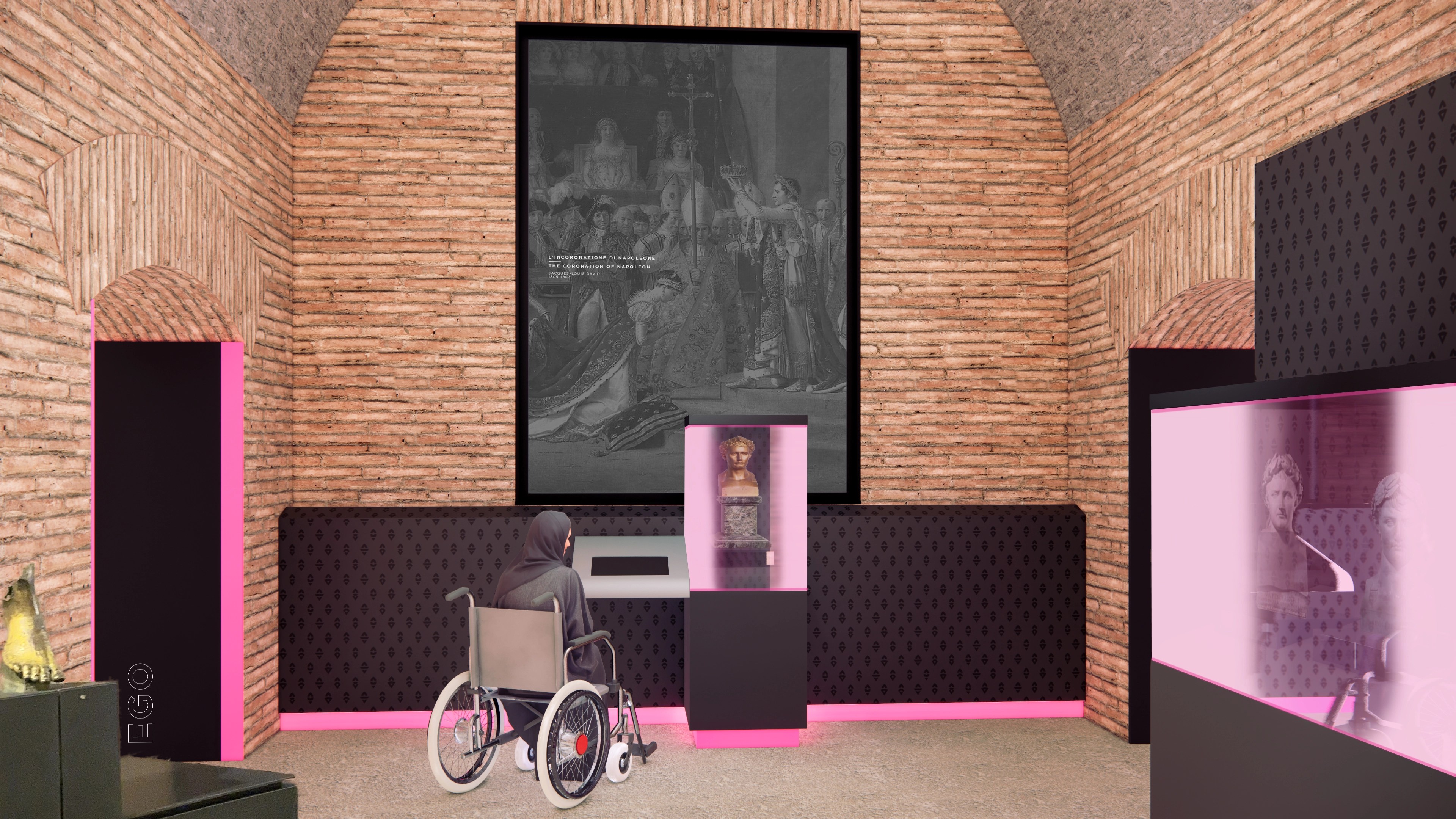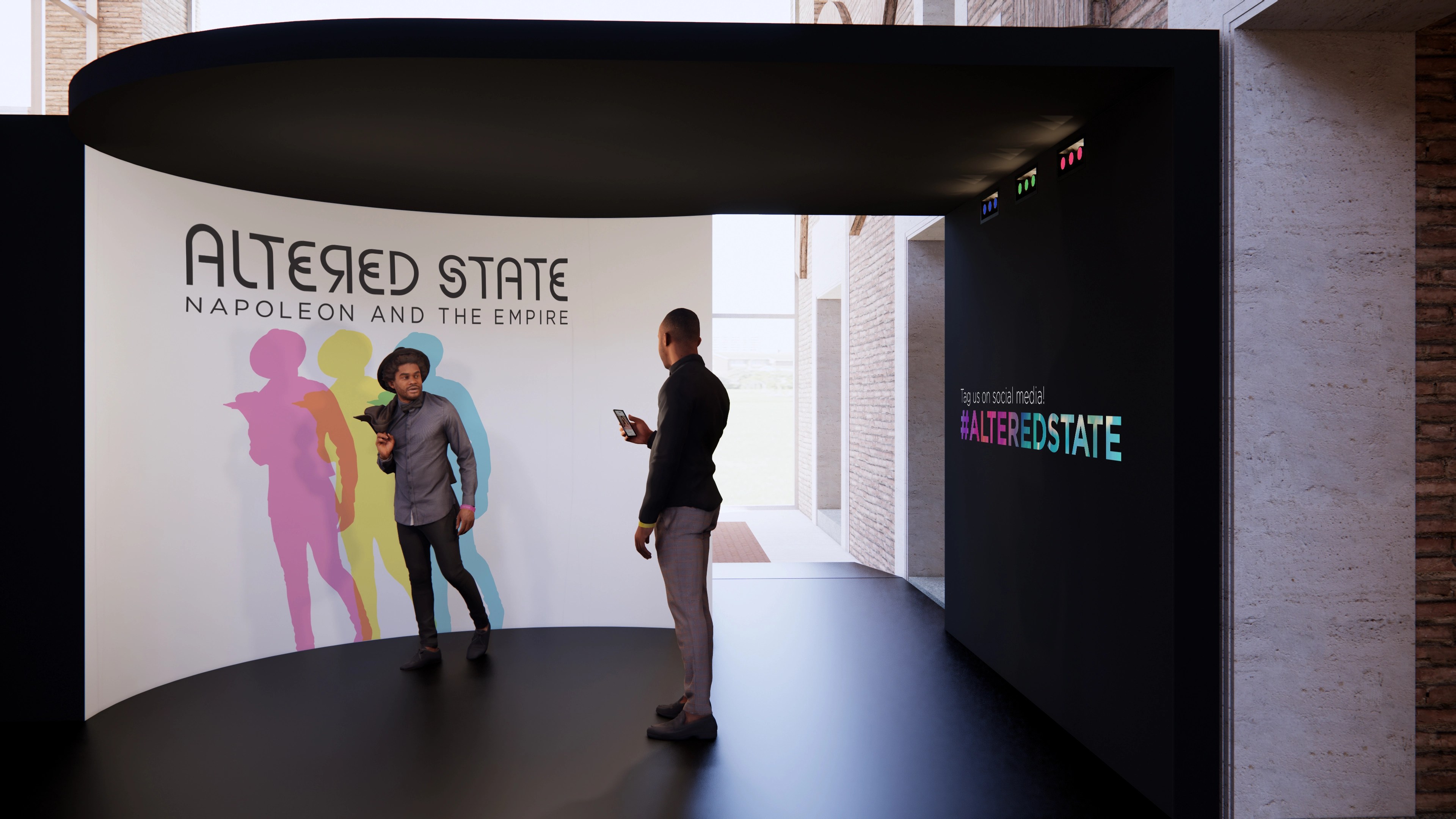 Altered State is a conceptual exhibition design for Trajan’s Market in Rome, Italy. It is an innovative temporary exhibition illustrating the life of Napoleon Bonaparte and his relations to Roman antiquity in the Trajan’s Market museum. Historical displays are modernized through the use of contemporary concepts and engaging, interactive systems as requested by the curator of the exhibition. This concept was created by a team of four design students, two Interior Design and two Graphic Design.